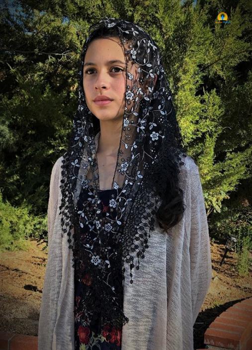 Sevillana Cherry Blossom Black Lace Mantilla Chapel Veil 16 80 2b