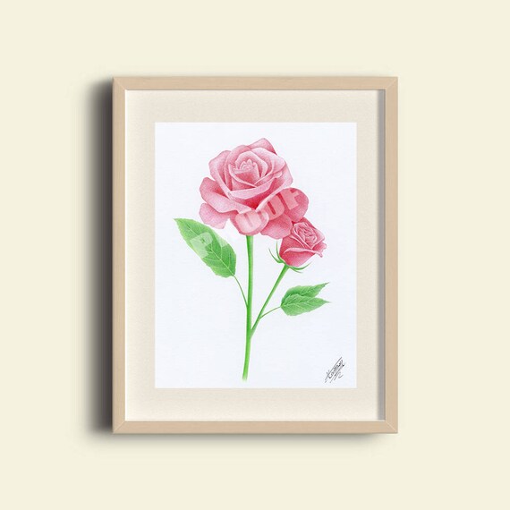 Red Rose Drawing Print Red Rose Painting Drawing Wall Decor Wall Art Sketch Color Pencil Print Art Watercolor Illustration Flowers Rosa