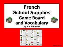 French School Supplies Class Objects Board Game And Vocabulary By